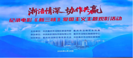 1月19日,由中共涪陵区委宣传部、区水利局联合主办,中央新影国际传媒、涪陵区融媒体中心承办,区教委、区委党校协办的 “浙涪情深 协作共赢”—— 纪录电影《新三峡》爱国主义主题观影活动在区委党校隆重举行。区领导、各相关单位负责人、浙江企业代表、交流人才、教职工及学生代表等近 800 人参与活动。